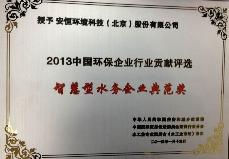 新年伊始捷报传,安恒集团以*异的表现荣获2013中国环保企业贡献盘点评选的“智慧型水务企业典范奖”。