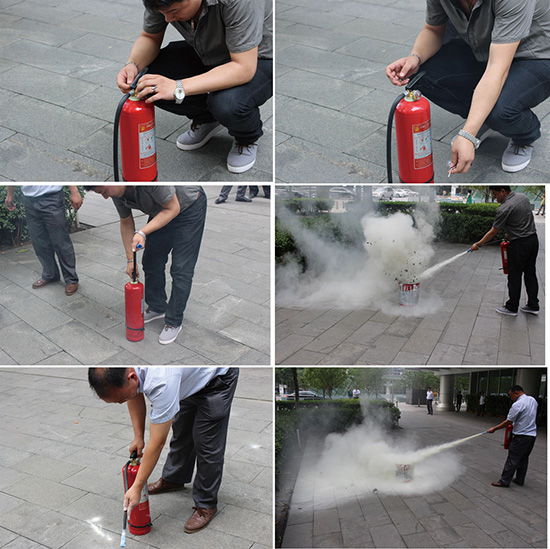 安恒集团消防演习的员工实操灭火器材使用方法