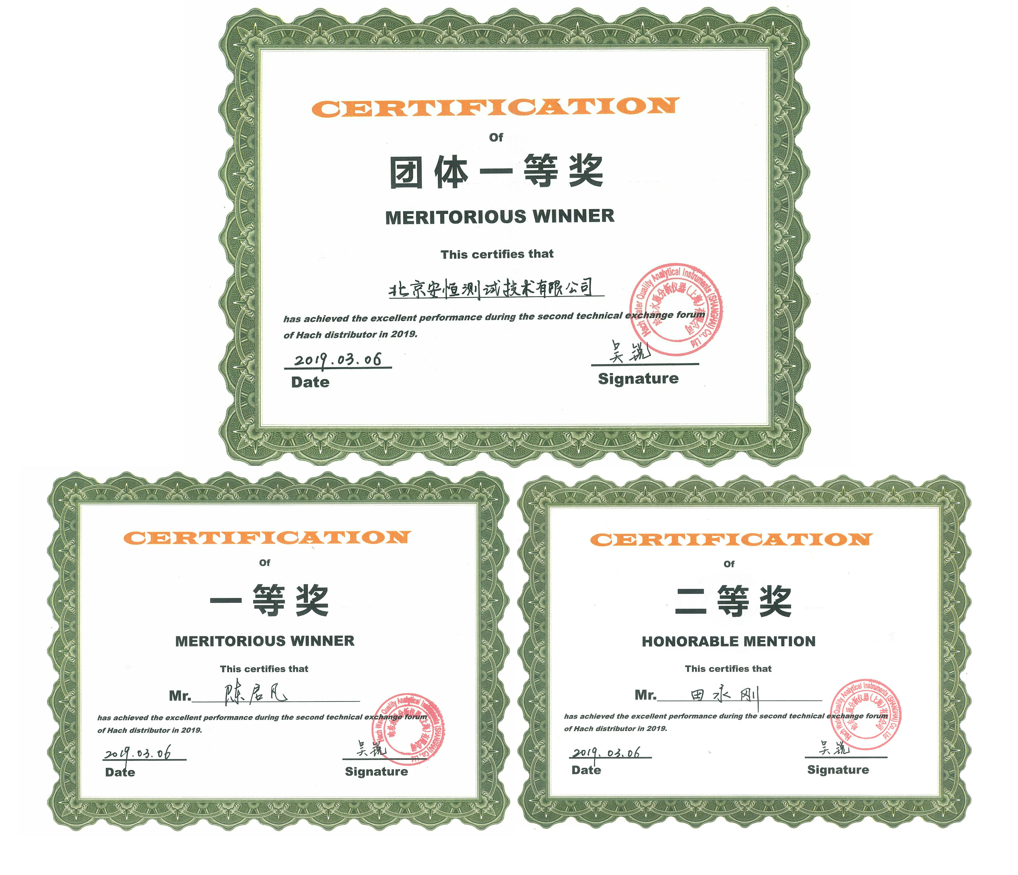近日,安恒售后服务技术团队在第二届哈希经销商技能大赛中独占鳌头,荣获团体*等奖,个人*等奖和二等奖,成为此次比赛的大赢家,安恒的哈希水质分析仪器售后技术支持水平和服务客户的能力再次得到证明。