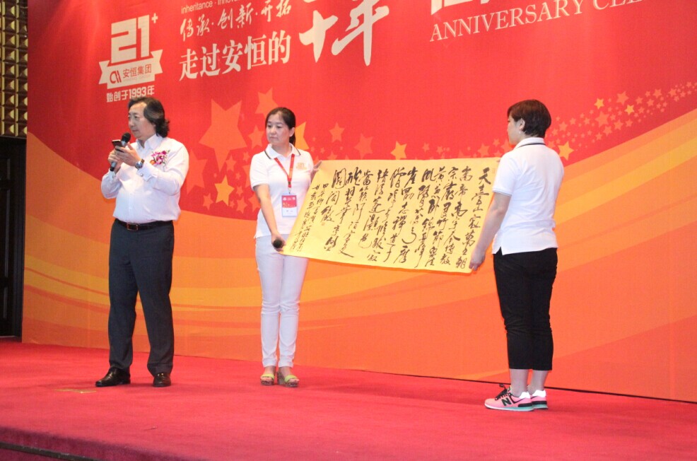 12日晚上的颁奖晚会上各地办事处展出了精心准备的表演节目,真是你方唱罢我登场好,好戏连台不冷场。有来自东北大区威风凛凛的太极表演、上海大区讲述安恒趣闻的海派清口、河南大区的最炫集体舞以及北京、山东、内蒙古等地气势高昂的大合唱,均为安恒集团21周年庆典增色无限,将庆典的气氛推向了高潮。随后的“团队乐章”汇报表演,更体现出全体安恒员工携手并进开创基业的决心。